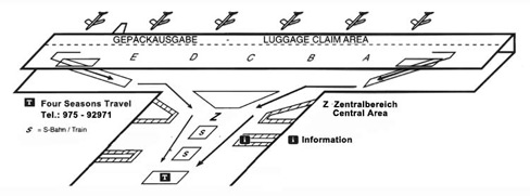 - In the central area your driver will meet you at the counter "FOUR SEASONS TRAVEL" (after the information counter behind the two stairways to the S-train.